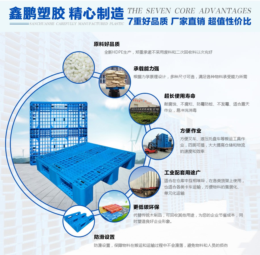 3、嚴禁將塑料托盤從高處拋落,避免因猛烈地撞擊而造成托盤破碎、裂紋。